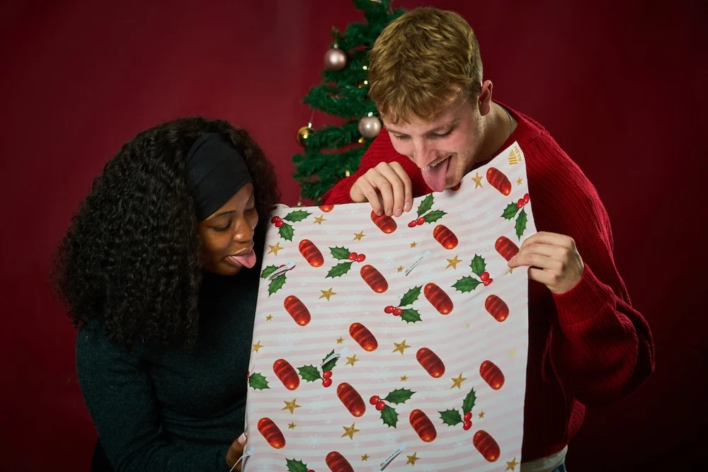 Aldi ซูเปอร์มาร์เก็ตในสหราชอาณาจักรเปิดตัว กระดาษห่อของขวัญรสไส้กรอกพันเบคอนที่สามารถเลียได้ เตรียมรับช่วงเทศกาลปลายปี