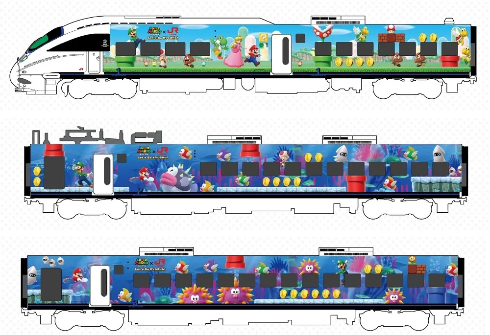 โครงการนี้เป็นความร่วมมือระหว่าง JR Kyushu และแฟรนไชส์ Super Mario ภายใต้แคมเปญ “Let’s Go Kyushu” โดย Kamome Shinkansen จะถูกตกแต่งด้วยสีแดง–น้ำเงินคู่บุญของ Mario พร้อมกราฟิกแบบจัดเต็ม