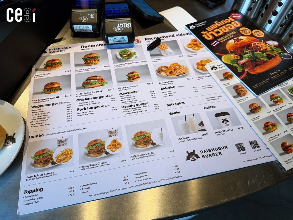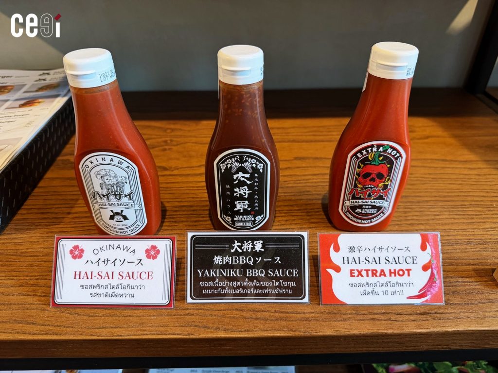 สำหรับผู้ที่มาเยือนเป็นครั้งแรก ขอแนะนำให้ลองสั่งเมนูซิกเนเจอร์อย่าง Double Shogun Burger ที่จัดเต็มเนื้อวากิวให้สัมผัสความฉ่ำกันแบบเต็มคำ นอกจากนี้ทางร้านยังมีเบอร์เกอร์อีกหลากหลายรูปแบบ ซึ่งบางเมนูจะมีออปชันเสริมอย่างการโปะไข่หรือเบคอนเพิ่มความจัดเต็มได้ด้วย เมื่อสั่งทานเป็นเซ็ตจะเสิร์ฟมาพร้อมกับเครื่องดื่ม ยิ่งไปกว่านั้น ทางร้านยังมีซอสสูตรพิเศษอีก 3 ตัวเตรียมไว้ให้ทดลองชิมเพื่อเพิ่มรสชาติและความสนุกในการรับประทานอีกด้วย