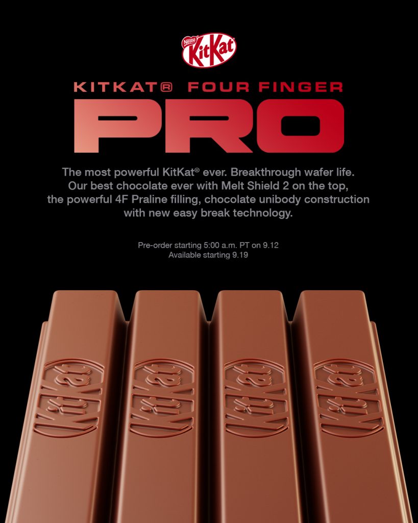 KitKat ปล่อยโฆษณาล้อเลียนเผยแพร่บนโซเชียลมีเดียด้วยการจับกระแส iPhone 17 Pro รุ่นใหม่ของ Apple ทีเพิ่งเปิดตัวไปเมื่อเร็วๆ นี้ ในภาพที่ปล่อยออกมาเผยให้เห็นเวเฟอร์วางในในสไตล์มินิมอลที่ชวนให้นึกถึงภาพถ่ายผลิตภัณฑ์ iPhone 17 Pro ของ Apple
