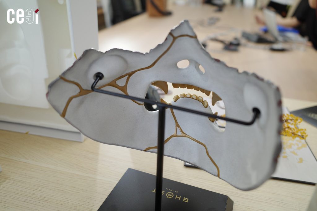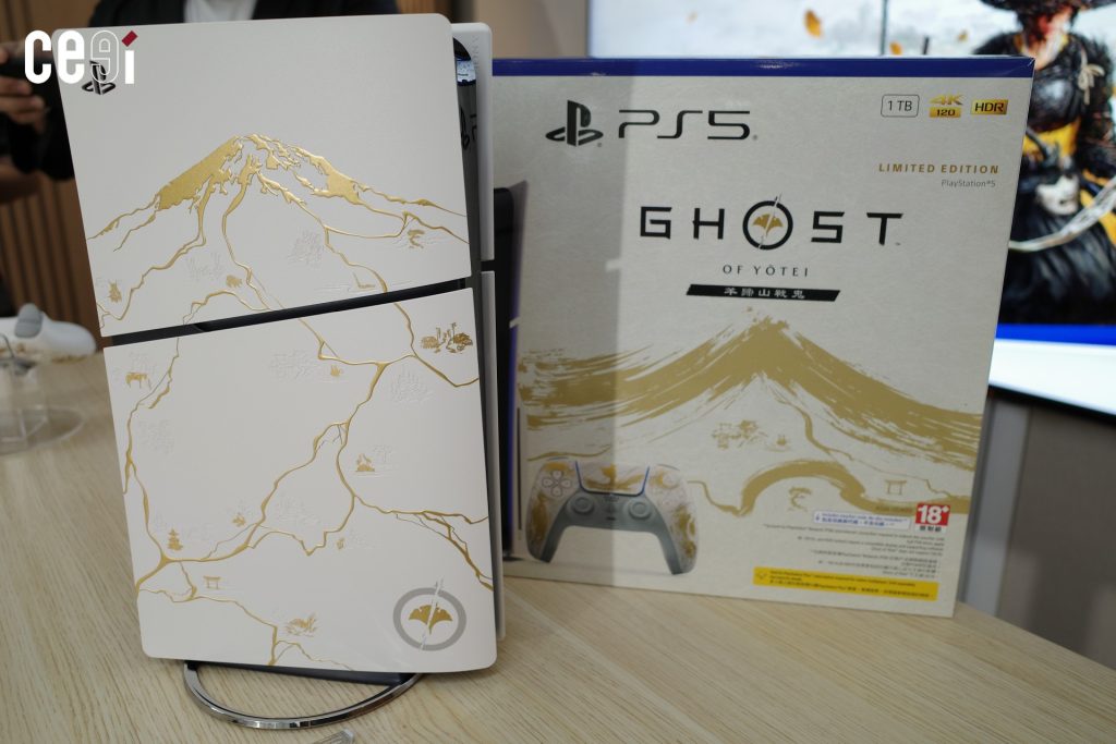 ตัวเครื่อง PlayStation 5 รุ่น Ghost of Yotei นั้นเป็นลายเส้นสีทองของภูเขาโยเทในฮอกไกโด สถานที่หลักของเกมนี้ โดยดีไซน์เหมือนรอยแตกนั้นได้แรงบันดาลใจเส้นสายมาจาก “คินสึงิ” ศิลปะการซ่อมแซมเครื่องปั้นดินเผาที่แตกด้วยยางไม้และผงทองคำ ซึ่งให้ความงดงามในความไม่สมบูรณ์แบบ เหมือนเส้นทางของ อัตสึ ตัวเอกของเกม นอกจากนี้ที่ตัวเครื่องยังมีลวดลายแบบซ่อนที่ลึกลงไปในเนื้อเคสอีกด้วย ส่วนด้านหลังมีตราประทับของ PlayStation อยู่