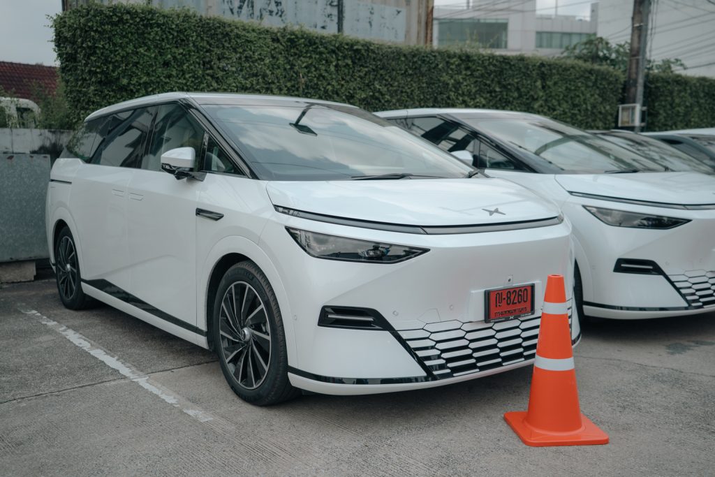 มาครบทั้งรถตู้ไฟฟ้า Xpeng X9 ที่หน้าตาโฉบเฉี่ยวไม่เหมือนรถตู้ ด้วยเอกลักษณ์ของตัวรถที่ยื่นไปด้านหน้าคล้ายหัวรถไฟฟ้า พร้อมด้วยเทคโนโลยีแบตฯ 800V และชูจุดเด่นของพื้นที่สัมภาระที่จุของได้แน่นๆ เต็มคันรถ และรถเอสยูวีไฟฟ้า Xpeng G6 แต่ว่ารุ่น Standard Range ที่เพิ่งเปิดตัวยังไม่มีให้ทดลองขับขี่ในงานนี้นะ