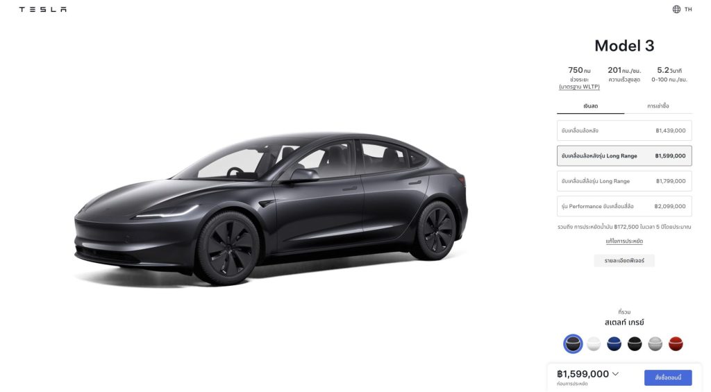 ซึ่งใครที่สนใจ Tesla Model 3 รุ่นใหม่ สามารถสั่งซื้อได้แล้ววันนี้ที่เว็บไซต์ Tesla ประเทศไทย