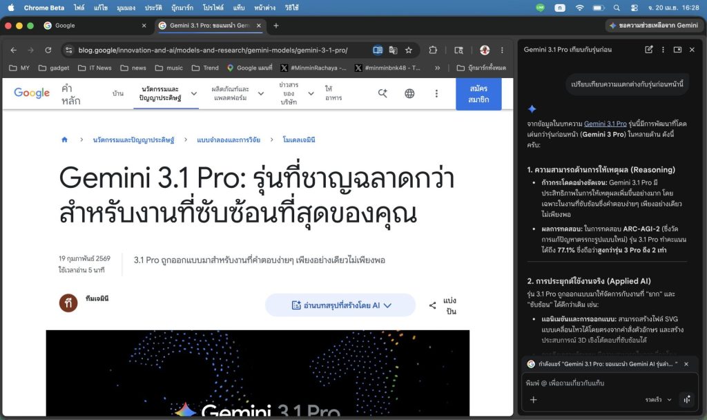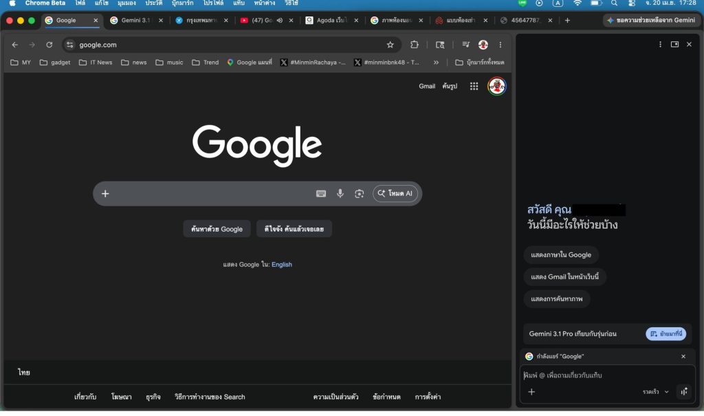 ล่าสุด ฟีเจอร์ Gemini in Chrome รองรับภาษาไทยอย่างเต็มรูปแบบแล้ว โดยเริ่มใช้งานได้ทั้งบนเดสก์ท็อปและ iOS ส่วนผู้ใช้ Android สามารถเรียกใช้งาน Gemini ได้ผ่าน Chrome และแอปอื่น ๆ เพียงกดปุ่มเปิด/ปิดเครื่องค้างไว้