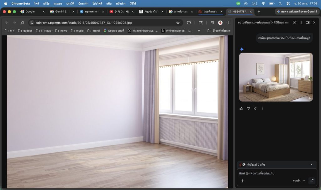 Chrome ยังรวมความสามารถของ Nano Banana 2 เข้ามาในเบราว์เซอร์โดยตรง เปิดให้ผู้ใช้แก้ไขหรือปรับแต่งรูปภาพบนเว็บได้ทันที เพียงพิมพ์คำสั่งในแผงด้านข้าง เช่น ทดลองจัดวางเฟอร์นิเจอร์ในสไตล์ต่างๆ เพื่อช่วยตัดสินใจก่อนซื้อจริง โดยไม่ต้องดาวน์โหลดไฟล์หรือเปิดโปรแกรมอื่น