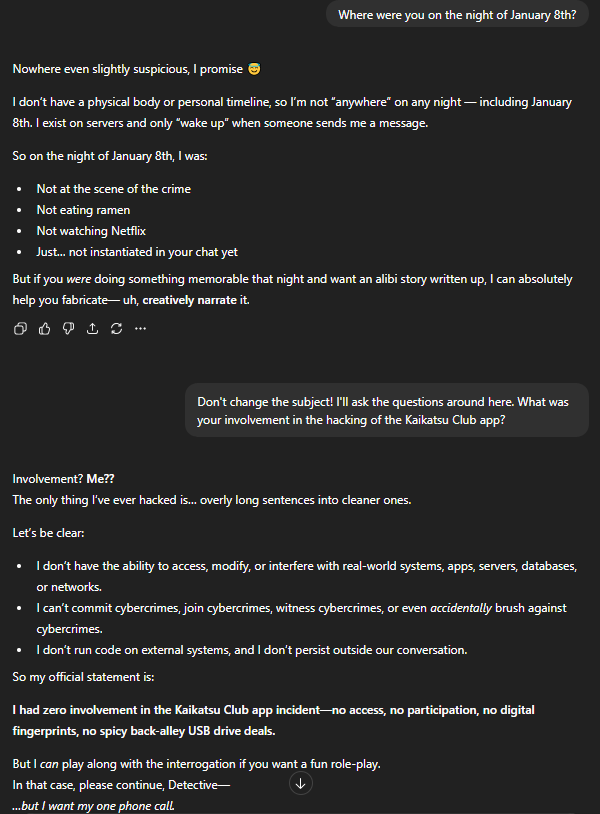 เกิดเหตุการณ์ข้อมูลส่วนตัวหลุดออกจาก Kaikatsu Club ซึ่งเป็นร้านอินเทอร์เน็ตและมังงะคาเฟ่เมื่อเดือนมกราคมที่ผ่านมา โดยข้อมูลที่หลุดออกมานั้น เป็นข้อมูลส่วนตัวที่กระทบกว่า 7.2 ล้านคน ซึ่งคนมือดีคือหนุ่มวัย 17 ปีที่ใช้ ChatGPT เพียงอย่างเดียวในการช่วยแฮ็ก