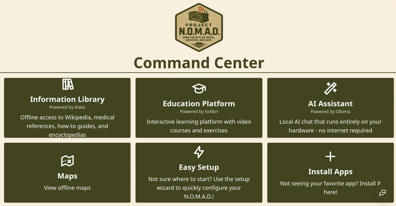 Project N.O.M.A.D. ย่อมาจาก Node for Offline Media, Archives, and Data พัฒนาโดยคริส เชอร์วูด (Chris Sherwood) จาก Crosstalk Solutions ไอเดียของโปรเจกต์นี้คือการเปลี่ยนแปลงคอมพิวเตอร์ธรรมดาเครื่องหนึ่งให้กลายเป็นเซิร์ฟเวอร์ที่มีข้อมูลครอบจักรวาล อย่าง Wikipedia ทั้งหมด, หลักสูตรการศึกษาแบบองค์กร, แผนที่ทั้งโลก, และแม้แต่ AI โดยทั้งหมดนี้สามารถทำงานได้แบบออฟไลน์โดยไม่จำเป็นต้องใช้อินเทอร์เน็ต และยังมีจุดเด่นอีก 3 อย่างคือ
