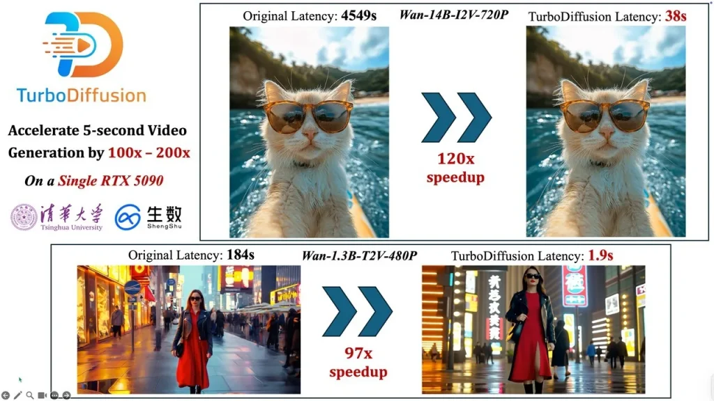 เมื่อเทียบกับเครื่องมือสร้างวิดีโอ AI ในปัจจุบันอย่าง Vidu ของ ShengShu หรือ Sora ของ OpenAI ที่ยังต้องใช้เวลาหลายนาทีในการสร้างคลิปสั้นๆ TurboDiffusion ช่วยให้ผู้สร้างไม่จำเป็นต้องรอการเรนเดอร์นานเป็นชั่วโมงอีกต่อไป สามารถได้วิดีโอที่พร้อมใช้งานภายในเวลาที่สั้นขึ้น