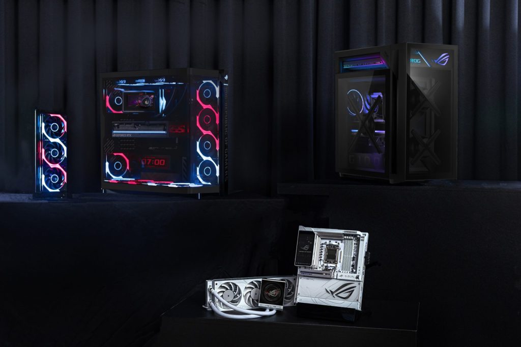 ในส่วนของเดสก์ท็อปพีซี ROG ก็ได้เปิดตัว ROG G1000 เป็นคอมพิวเตอร์เกมมิงตั้งโต๊ะ ที่มาพร้อมฟีเจอร์ AniMe Holo ซึ่งเป็นระบบพัดลมโฮโลแกรมแบบติดตั้งในตัว (Built-in) สามารถฉายภาพโฮโลแกรมแบบที่สามารถปรับแต่งเองได้ โดยติดตั้งแยกอิสระเพื่อไม่ให้รบกวนระบบระบายความร้อนหลัก สเปกภายใน รองรับการ์ดจอสูงสุดเป็น ROG Astral GeForce RTX™ 5090 หรือ AMD Radeon™ 9070XT พร้อมแรม DDR5 สูงสุด 128GB บนเคสขนาด ATX Ultra Tower ที่ออกแบบมาเพื่อการระบายความร้อนโดยเฉพาะ