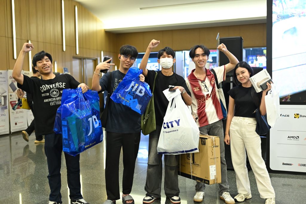 สัดส่วนยอดขายสินค้าภายในงาน ที่จัดขึ้นระหว่างวันที่ 5-8 มีนาคม 2569 ที่ผ่านมา ณ ศูนย์นิทรรศการและการประชุมไบเทค บางนา พบว่ากลุ่มสินค้าโน้ตบุ๊กได้รับความนิยมสูงสุด ด้วยสัดส่วน 49% ตามมาด้วยคอมพิวเตอร์ประกอบ 20% สมาร์ตโฟน 13% อุปกรณ์เสริมสำหรับเล่นเกม 10% และการ์ดจอ 8% โดยแบรนด์ที่มียอดขายสูงสุด ได้แก่ Acer, AMD, Apple, Asus, Galax, Gigabyte, HP, Intel, Lenovo และ MSI ขณะที่ร้านค้าปลีกที่ทำยอดขายได้ดี ได้แก่ Banana, IT CITY, JIB, Speed และ SPVi