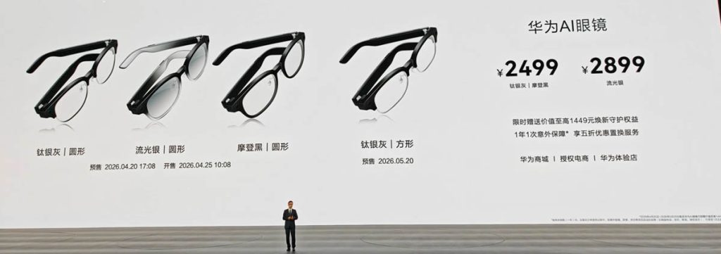 Huawei AI Glasses มีราคาเริ่มต้นที่ 2,499 หยวน หรือประมาณ 11,800 บาทสำหรับสีเทาและสีดำ และราคา 2,899 หยวน หรือประมาณ 13,600 บาท สำหรับสี Shimmery Silver