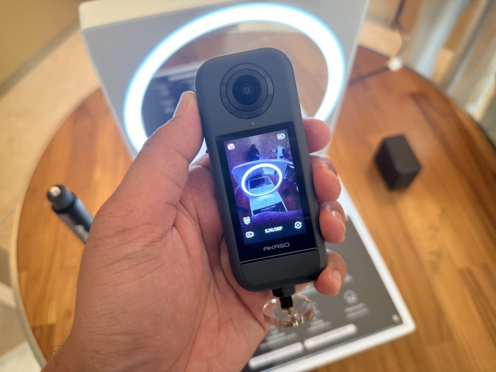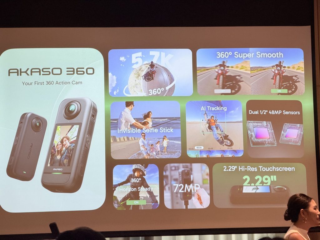 จุดเด่นของ AKASO 360 อยู่ที่ดีไซน์ขนาดเล็กกะทัดรัด พกพาสะดวก มาพร้อมหน้าจอทัชสกรีนขนาด 2.29 นิ้ว ตัวกล้อง AKASO 360 มาพร้อมเลนส์คู่ความละเอียดสูงสุดถึง 72 ล้านพิกเซล เซนเซอร์ขนาด 1/2 นิ้ว รองรับการถ่ายวิดีโอความละเอียดสูงสุดที่ 5.7K 30FPS