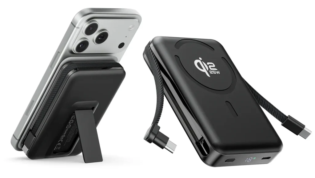 ดีไซน์เครื่องมีการปรับเปลี่ยนหลายด้าน เริ่มตั้งแต่ เพิ่มจอแสดงผลด้านข้างเพื่อบอกปริมาณแบตและสถานะการชาร์จ มาพร้อมขาตั้งในตัว และสาย USB-C ที่ติดมาให้สำหรับชาร์จอุปกรณ์อื่นด้วยกำลังสูงสุด 35W ส่วนการชาร์จไร้สายรองรับมาตรฐาน Qi2.2 ชาร์จด้วยกำลังสูงสุด 25W