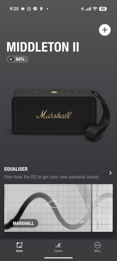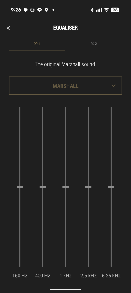 ลำโพงตัวนี้สามารถควบคุมฟีเจอร์ระดับสูงได้ผ่านแอป Marshall ซึ่งเราสามารถปรับ EQ แบบละเอียด 5 band ได้ผ่านแอป แล้วก็สามารถอัปเดตเฟิร์มแวร์ของลำโพงผ่านแอปได้เช่นกัน