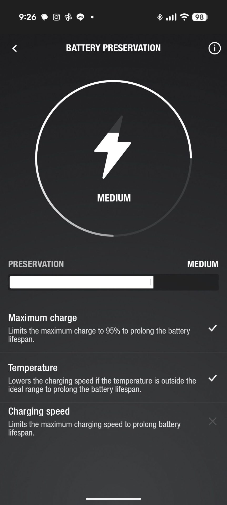 นอกจากนี้ในแอปเรายังสามารถตั้งค่าระบบพลังงานของลำโพง ตั้งแต่เมื่อไม่มีการเล่นเพลงจะให้ลำโพงรอกี่นาทีถึงจะดับเครื่องเอง หรือการตั้งค่าเพื่อยืดอายุแบตเตอรี่ให้เสื่อมช้าลง โดยทำได้ 3 ระดับคือ