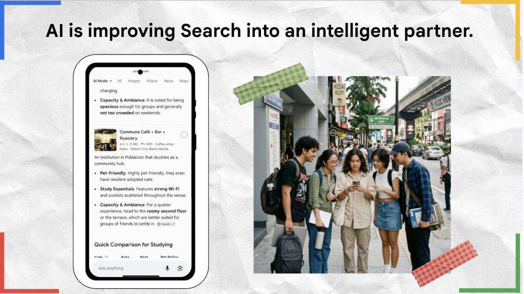 Sapna Chadha, Vice President, Google Southeast Asia and South Asia Frontier กล่าวว่า “AI คือสิ่งที่ดีที่สุดที่เกิดขึ้นกับ Search ตอนนี้ Search ทำได้มากกว่าแค่การให้ข้อมูล AI ทำให้ Search ฉลาดขึ้นจนสามารถพูดคุยโต้ตอบได้ในหลากหลายรูปแบบ และสามารถตอบคำถามที่มีรายละเอียดที่ซับซ้อนได้ ในเอเชียตะวันออกเฉียงใต้ ซึ่งเป็นภูมิภาคที่มีประชากรวัยรุ่นที่คุ้นเคยกับ AI มากที่สุดแห่งหนึ่งในโลก เรากำลังเห็นการเปลี่ยนแปลงนี้เกิดขึ้นแบบเรียลไทม์ สำหรับคนรุ่นนี้ Search ได้กลายเป็นเพื่อนคู่คิดที่อยู่เคียงข้างในทุกเรื่อง พวกเขาค้นหาข้อมูลแบบเจาะลึกขึ้น และใช้ภาพและเสียงในการค้นหามากกว่าคนรุ่นก่อนๆ พวกเขามักใช้ Search ในการหาข้อมูลที่เชื่อถือได้เพื่อประกอบการตัดสินใจในเรื่องต่างๆ ไม่ว่าจะเป็นการเรียนรู้ การสำรวจแพชชั่นหรือความหลงใหลส่วนตัว หรือการตัดสินใจซื้อครั้งสำคัญ”