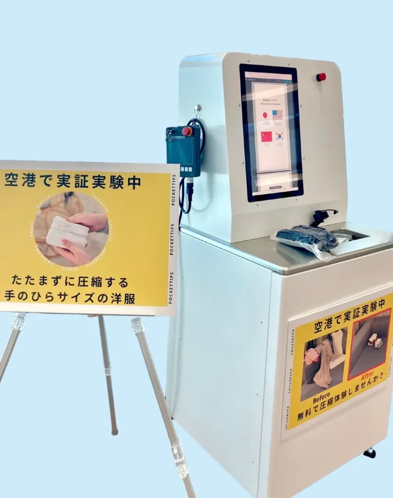 นักท่องเที่ยวจำนวนไม่น้อยที่เดินทางไปญี่ปุ่นมักเจอปัญหากระเป๋าเดินทางเต็มในขากลับ สนามบินฮาเนดะจึงเตรียมทดสอบ “Pocket Tips” เครื่องบีบอัดเสื้อผ้าอัตโนมัติ ที่ช่วยลดขนาดเสื้อผ้าเหลือได้สูงสุดเพียง 1 ใน 7 ของขนาดเดิม