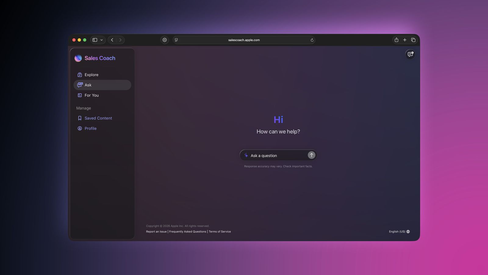 นอกจากแอปพลิเคชันแล้ว Sales Coach ก็จะเปิดให้ใช้งานบนเว็บไซต์ salescoach.apple.com ด้วยเช่นกัน แต่เป็นเครื่องมือภายในสำหรับพาร์ตเนอร์ฝ่ายขายของ Apple ดังนั้น คนทั่วไปไม่สามารถเข้าถึงหรือใช้งานได้ตามปกติครับ