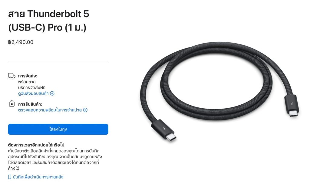 อย่างสาย Thunderbolt 5 ของแอปเปิ้ลความยาว 1 เมตร มีราคา 2,490 บาท ส่วนสาย USB-C 4.0 40 Gbps สามารถหาได้ในราคาไม่กี่ร้อยบาทเท่านั้น