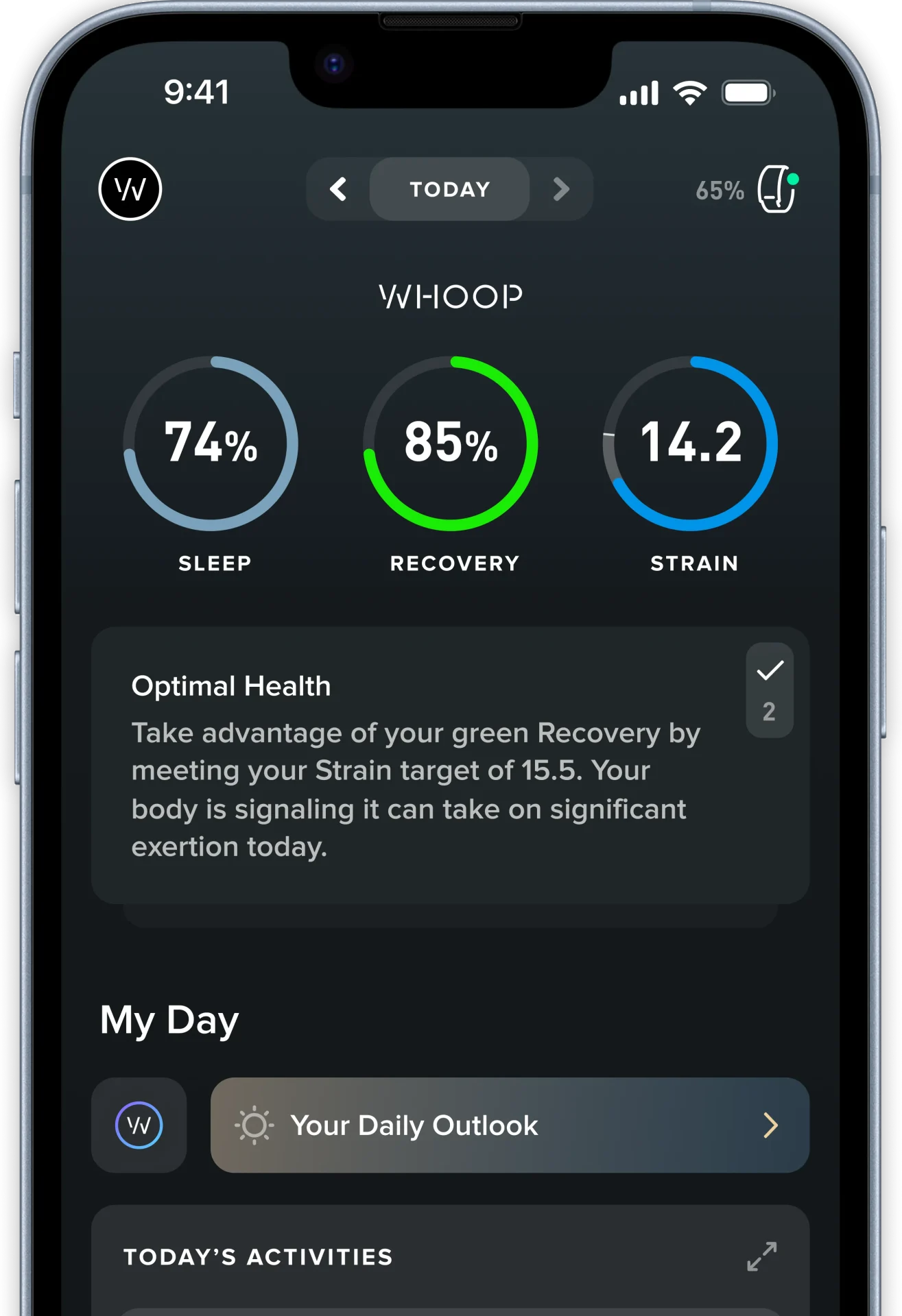 อีกประเด็นหลักที่ทาง Whoop ใช้ฟ้องร้อง Bevel คือการออกแบบหน้าจอผู้ใช้งานซึ่ง Whoop บอกว่า Bevel ลอกเลียนแบบหน้าจอหลักโดยเฉพาะการใช้วงแหวนและกราฟแท่งวงกลมสีสันต่าง ๆ แต่ Bevel บอกว่า รูปแบบดังกล่าวเป็นมาตรฐานสากลในการแสดงผลข้อมูลสุขภาพที่แอปพลิเคชันใด ๆ ก็ใช้กัน ยิ่งไปกว่านั้น Whoop ต่างหากที่เพิ่งอัปเดตหน้าจอของตนเองให้มีดีไซน์วงแหวน 3 วงเรียงกันคล้ายกับที่ Bevel ทำมาก่อน