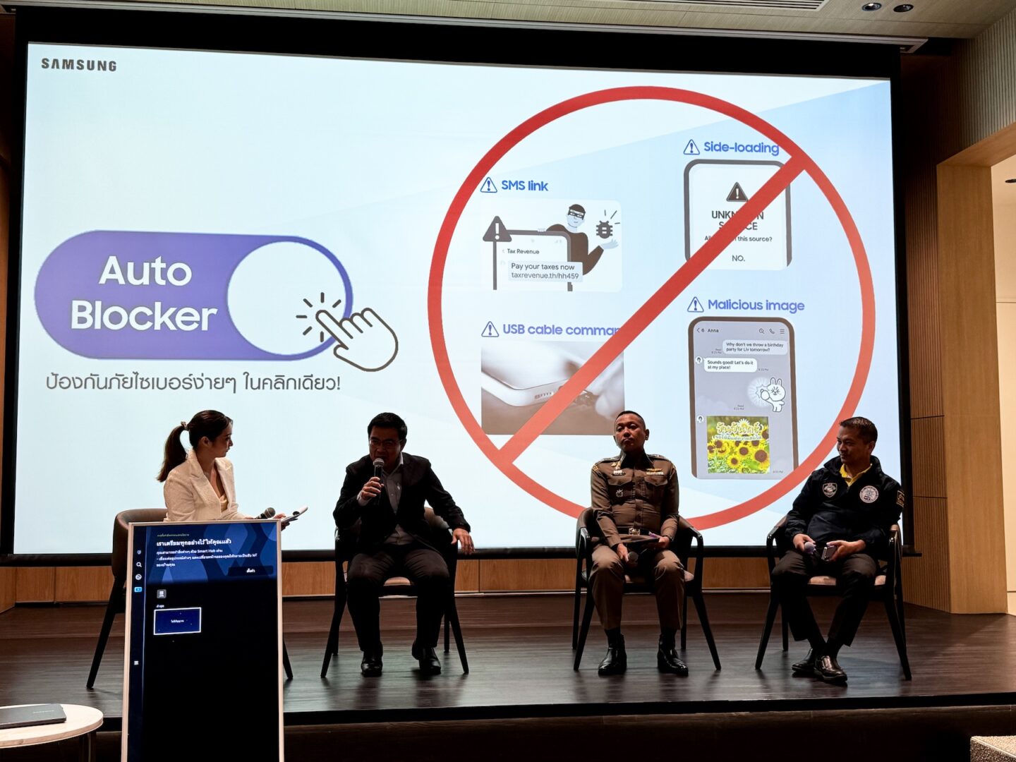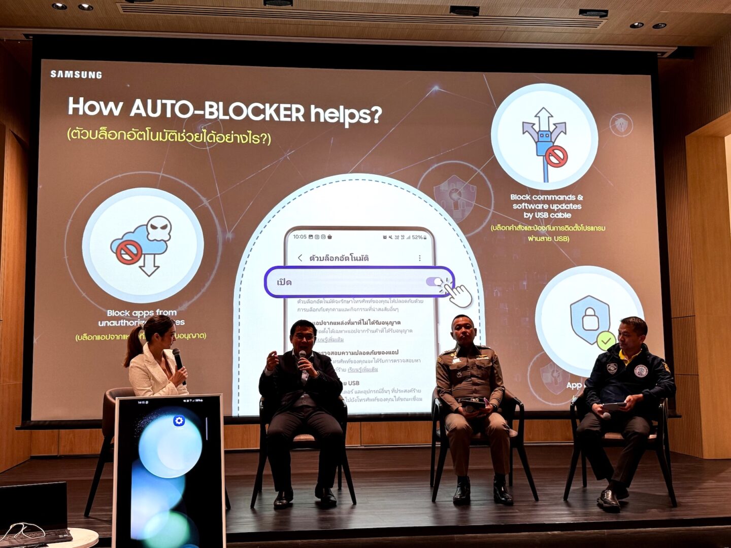 นายไชยวัฒน์ อุดมศรีรุ่งเรือง ผู้อำนวยการอาวุโส ธุรกิจโมบายล์ เอ็กซ์พีเรียน์ บริษัทไทยซัมซุง กล่าวว่า “ซัมซุงได้ร่วมมือกับสำนักงานตำรวจแห่งชาติ โดยขอคำปรึกษา แนะนำ แชร์เคสที่เกิดขึ้น รวมถึงการแลกเปลี่ยนข้อมูล เพื่อช่วยปกป้องประชาชนจากภัยไซเบอร์ ซึ่ง Auto Blocker ก็มีการร่วมทดสอบเพื่อให้มั่นใจว่าสามารถป้องกันอย่างเห็นผลจริง