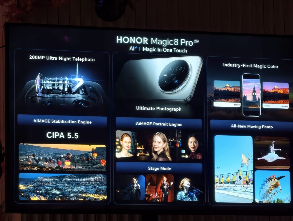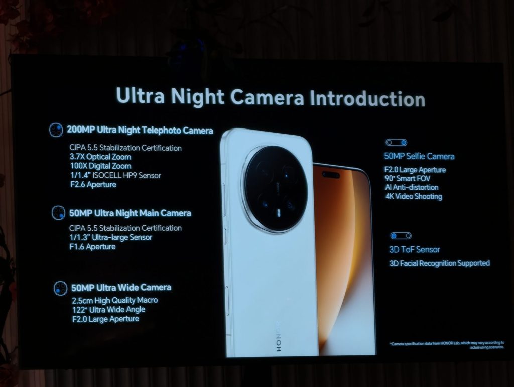 จุดเด่นสำคัญของ HONOR Magic8 Pro คือกล้องถ่ายภาพที่ออกแบบภายใต้คอนเซปต์ ‘AI Light Up the Magical Night’ โดยมาพร้อมกล้องถ่ายภาพซูมความละเอียด 200 ล้านพิกเซล ใช้เซนเซอร์ ISOCELL HP9 ขนาด 1/1.4 นิ้ว และรูรับแสง f/2.6 ทำงานร่วมกับระบบกันสั่น OIS และ AI Adaptive Stabilization Model ช่วยให้การซูมมีความคมชัดตั้งแต่ระยะ 10 เท่า ไปจนถึงสูงสุด 100 เท่า พร้อมรองรับมาตรฐาน CIPA ระดับ 5.5 เพื่อลดอาการเบลอจากการสั่นไหว