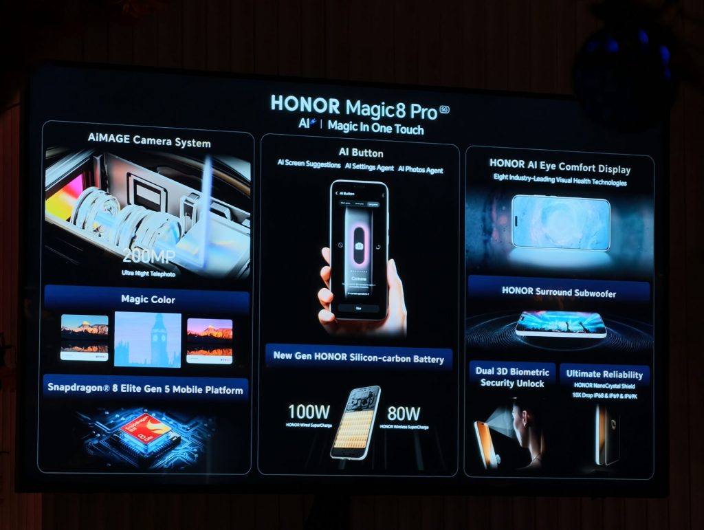 ออเนอร์ (HONOR) ประเทศไทย ประกาศเปิดตัว HONOR Magic8 Pro สมาร์ตโฟนเรือธงรุ่นล่าสุดอย่างเป็นทางการ มาพร้อมกล้องถ่ายภาพซูมความละเอียด 200 ล้านพิกเซล พร้อมฟีจอร์ AI หลายตัว และแบตเตอรี่ซิลิคอนคาร์บอนความจุ 7100 mAh ในราคา 39,990 บาท
