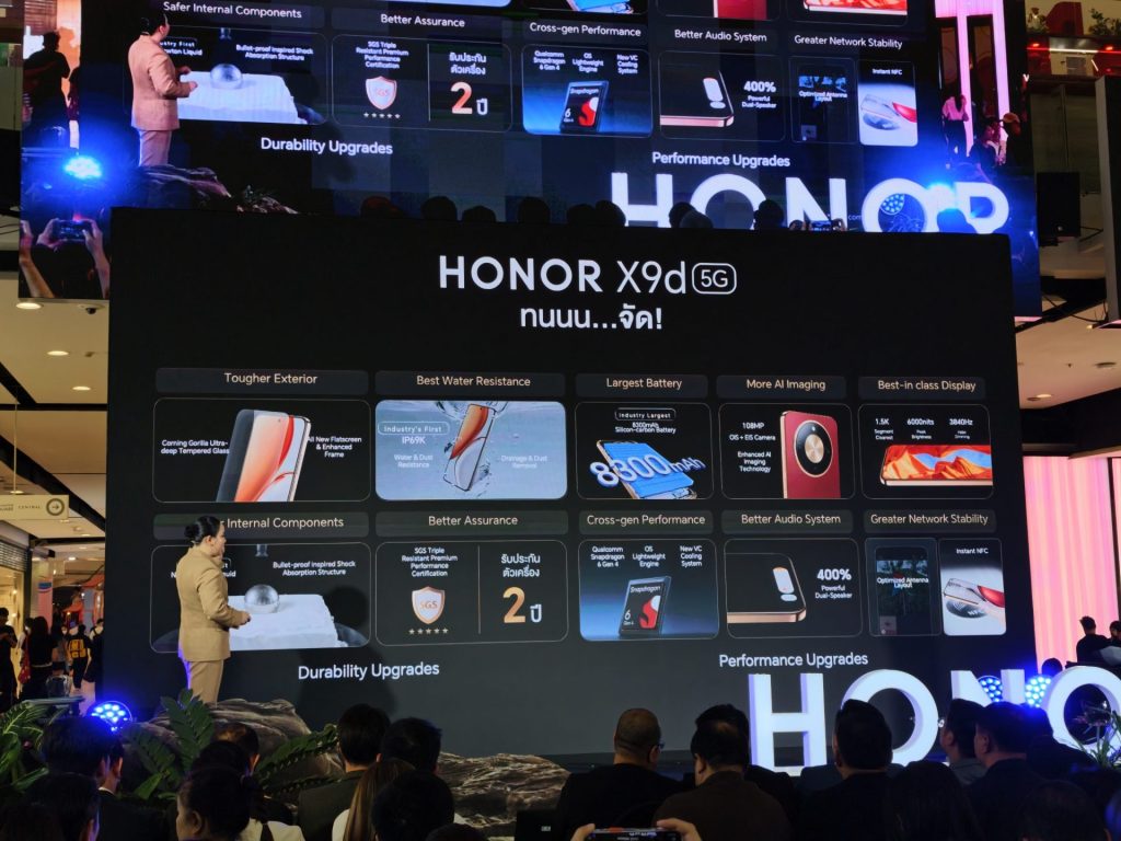 HONOR ประเทศไทย เปิดตัวสมาร์ตโฟนรุ่นใหม่ X9d รอบนี้ได้ชูจุดเด่นเรื่องความทนทานขั้นสุด และแบตเตอรี่ขนาดใหญ่มาก ๆ ที่ 8300 mAh เหมาะสำหรับสายลุย ไรเดอร์ และใครที่ต้องทำงานนอกบ้านบ่อย ๆ