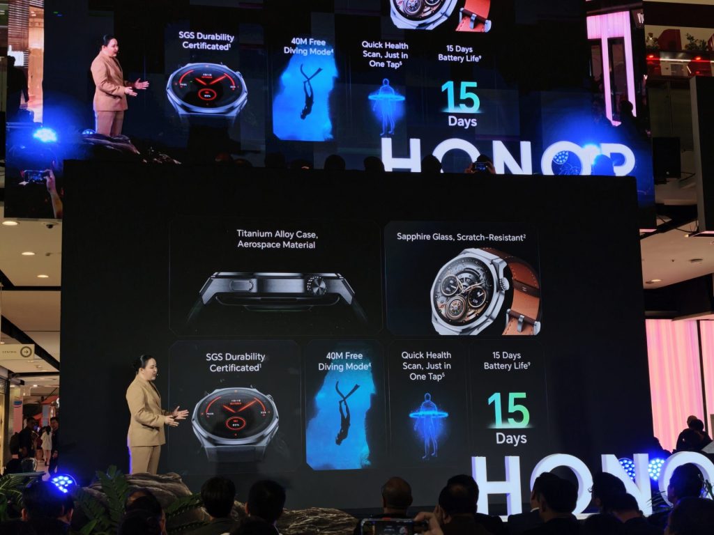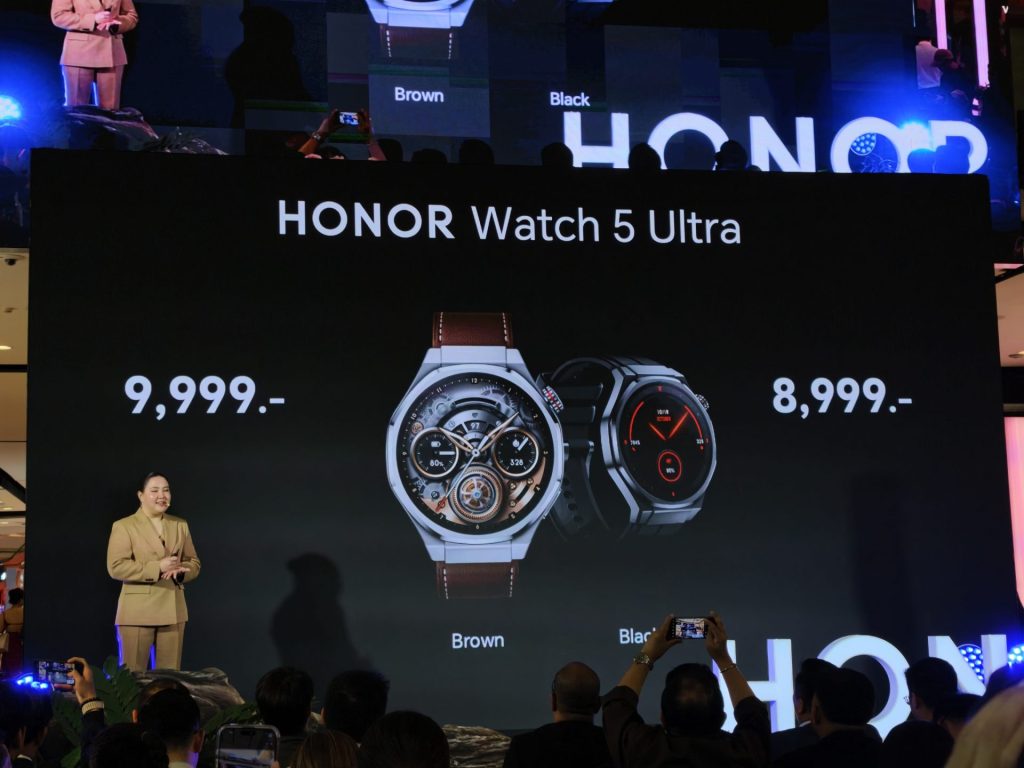 นอกจากนี้ HONOR ยังได้เปิดตัวอุปกรณ์สวมใส่รุ่นใหม่ HONOR Watch 5 Ultra สมาร์ตวอทช์ตัวท็อป ที่เน้นดีไซน์หรูหรา ทนการกระแทก และดำน้ำได้ลึก 40 เมตร (ราคา 8,999 บาทในสีดำ และ 9,999 ในสีน้ำตาลด้วยสายหนัง) และ HONOR Watch Fit สมาร์ตวอทช์สายกีฬา ที่น้ำหนักเบา และแบตเตอรี่อยู่ได้นาน 23 วัน (ราคา 2,999 บาทในสีดำ และ 3,999 บาทในสายสไตล์เดนิม) เพื่อเข้ามาทำตลาดพร้อมกันอีกด้วย
