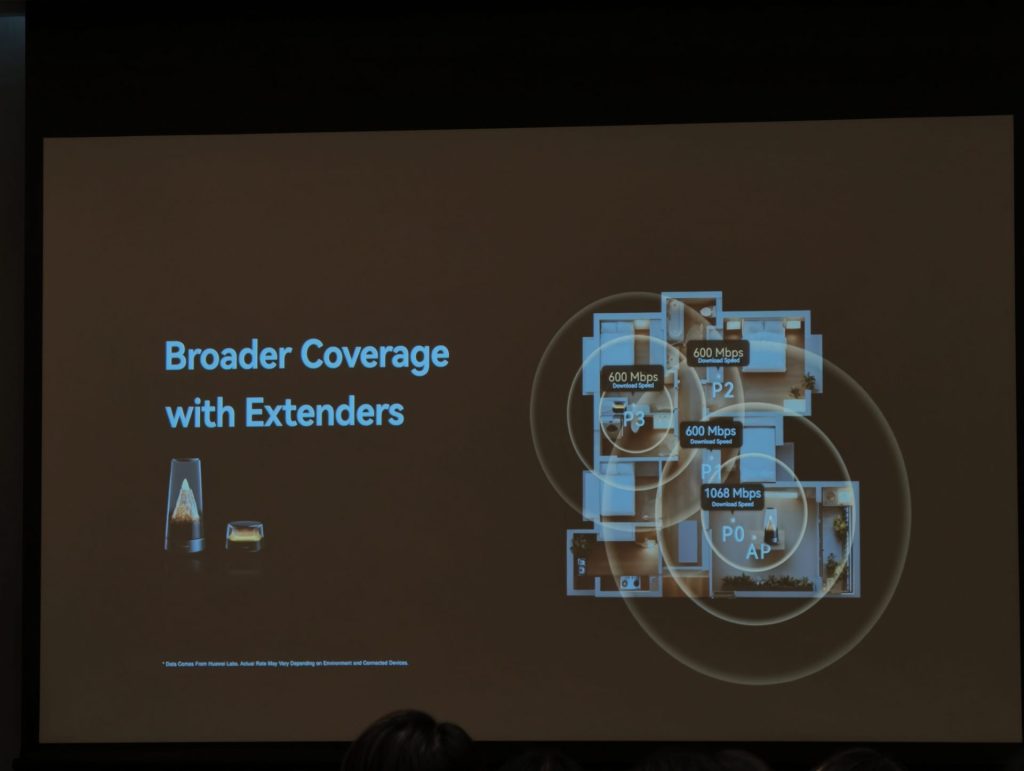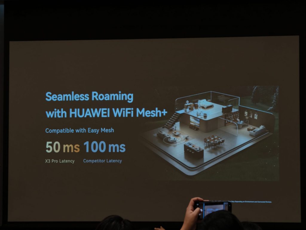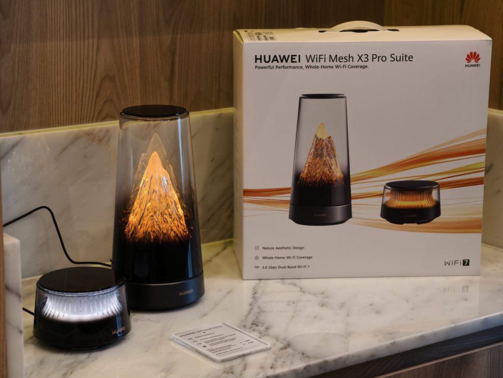 นอกจากนั้น HUAWEI ได้เปิดตัวเราเตอร์รุ่นใหม่ HUAWEI WiFi Mesh X3 Pro ที่ออกแบบภายใต้แนวคิดผสมผสานธรรมชาติเข้ากับเทคโนโลยี โดยตัวเครื่องสามารถปรับเปลี่ยนแสงไฟได้ตามช่วงเวลา ด้านประสิทธิภาพ รองรับมาตรฐาน WiFi 7 ให้ความเร็วสูงสุด 3.6 Gbps ซึ่งรองรับการใช้งานอินเทอร์เน็ตความเร็วสูง เช่น การสตรีมวิดีโอ 4K และ 8K หรือการเชื่อมต่อหลายอุปกรณ์พร้อมกัน นอกจากนี้ ยังมีระบบระบายความร้อน Shark Fin Heat Dissipation System เพื่อรักษาเสถียรภาพในการใช้งาน และสามารถควบคุมการทำงานผ่านแอปพลิเคชัน HUAWEI AI Life ได้ด้วย