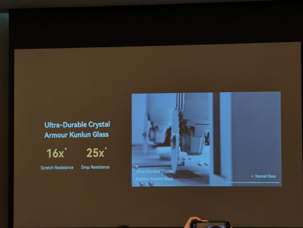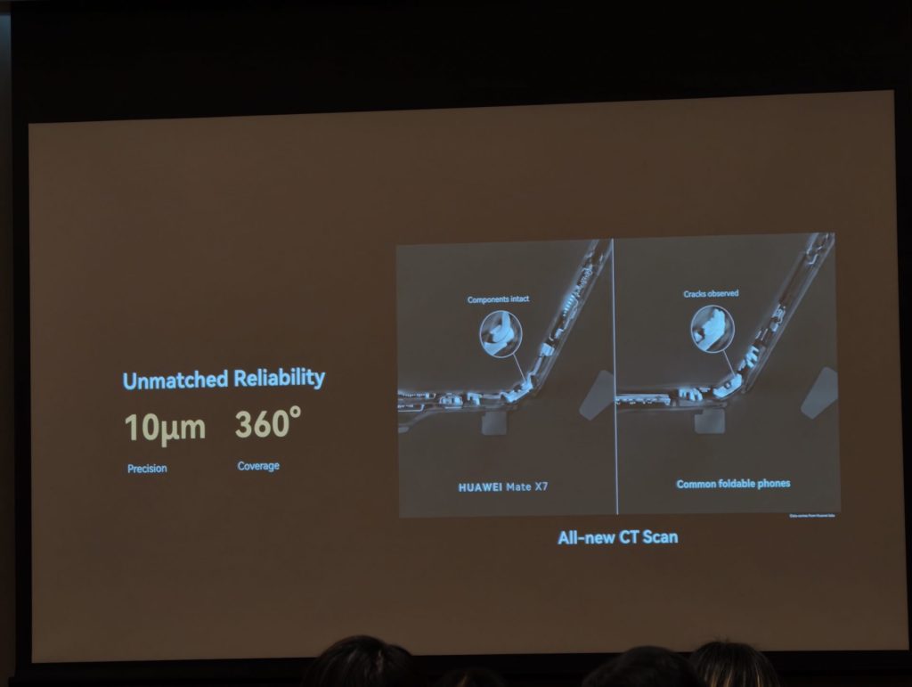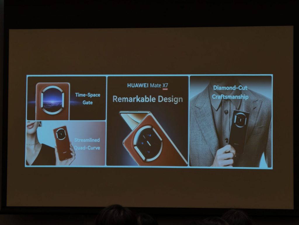 HUAWEI Mate X7 ได้รับการออกแบบโดยเน้นความทนทานของโครงสร้างเป็นสำคัญ โดยมีการปรับปรุงบานพับ ด้วยกลไกรูปโค้ง 5 ชิ้นส่วน ที่ผลิตจากเหล็กกล้าความแข็งแรงสูง ส่วนหน้าจอด้านนอก ใช้กระจก Ultra-Durable Crystal Armour Kunlun Glass เพื่อป้องกันรอยขีดข่วน และการตกหล่น สำหรับหน้าจอด้านใน HUAWEI เคลมว่าเป็นเจ้าแรกในอุตสาหกรรม ที่ใช้โครงสร้างคอมโพสิต 3 ชั้น ซึ่งช่วยให้ทนต่อการงอได้ดีขึ้น 100% และทนแรงกระแทกเพิ่มขึ้น 20% นอกจากนี้ ตัวเครื่องยังใช้วัสดุอะลูมิเนียมเกรดอากาศยาน และฝาหลังแบบ Composite Brocade Fiber โดยมีคุณสมบัติกันฝุ่นและน้ำที่ระดับ IP58 และ IP59 ซึ่งผ่านการทดสอบด้วยน้ำอุณหภูมิสูงและแรงดันสูง