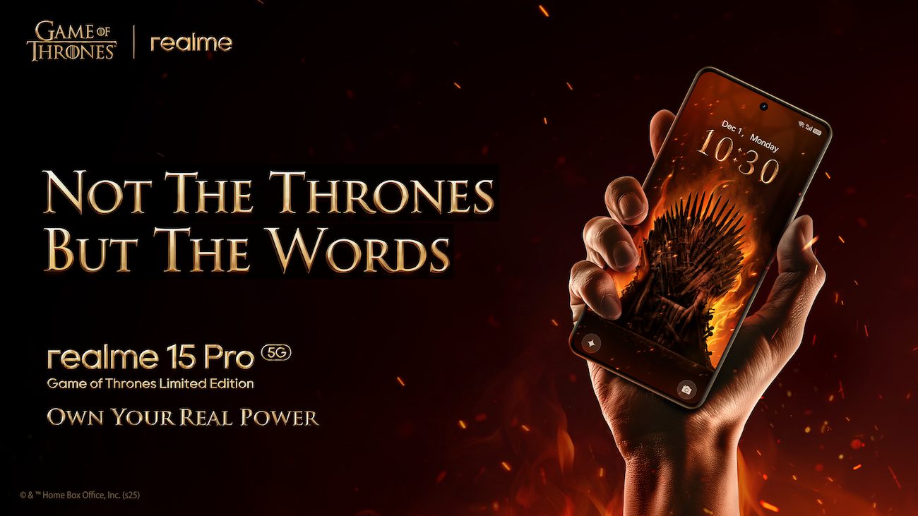 มร.เชส ซวี่ รองประธานกรรมการและประธานเจ้าหน้าที่ฝ่ายการตลาด realme กล่าวว่า “ความร่วมมือครั้งนี้ เปรียบเสมือนการหลอมรวมระหว่างไฟแห่งนวัตกรรม กับตำนานเหนือกาลเวลา เรานำพลังจาก Game of Thrones มาสู่ดีไซน์ที่ล้ำสมัย เพื่อปลุกจิตวิญญาณของคนรุ่นใหม่ให้กล้าที่จะยืนหยัดในเส้นทางของตัวเอง”