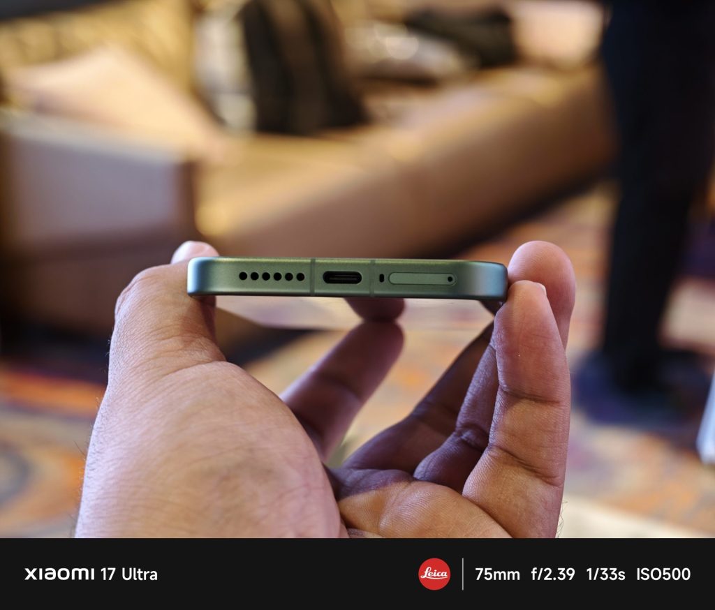 ในส่วนของการออกแบบ Xiaomi กล่าวว่าดีไซน์ที่ผ่านการปรับแต่งมานี้ ทำให้ Xiaomi 17 Ultra เป็นซีรีส์ Ultra ที่บางและเบาที่สุดเท่าที่เคยมีมา ด้วยความหนาของตัวเครื่องmuj 8.29 มิลลิเมตร โครงสร้างตัวเครื่องใช้เทคโนโลยี Xiaomi Guardian Structure ที่ประกอบด้วยเฟรมอะลูมิเนียมอัลลอย ฝาหลังไฟเบอร์กลาส และกระจกหน้าจอ Xiaomi Shield Glass 3.0 ที่ Xiaomi เคลมว่าทนต่อการตกกระแทกเพิ่มขึ้น 30% เมื่อเทียบกับรุ่นก่อนหน้า พร้อมรองรับมาตรฐานกันฝุ่นและน้ำระดับ IP68 มีตัวเลือก 3 สี ได้แก่ ดำ, ขาว และสีเขียว Starlit Green
