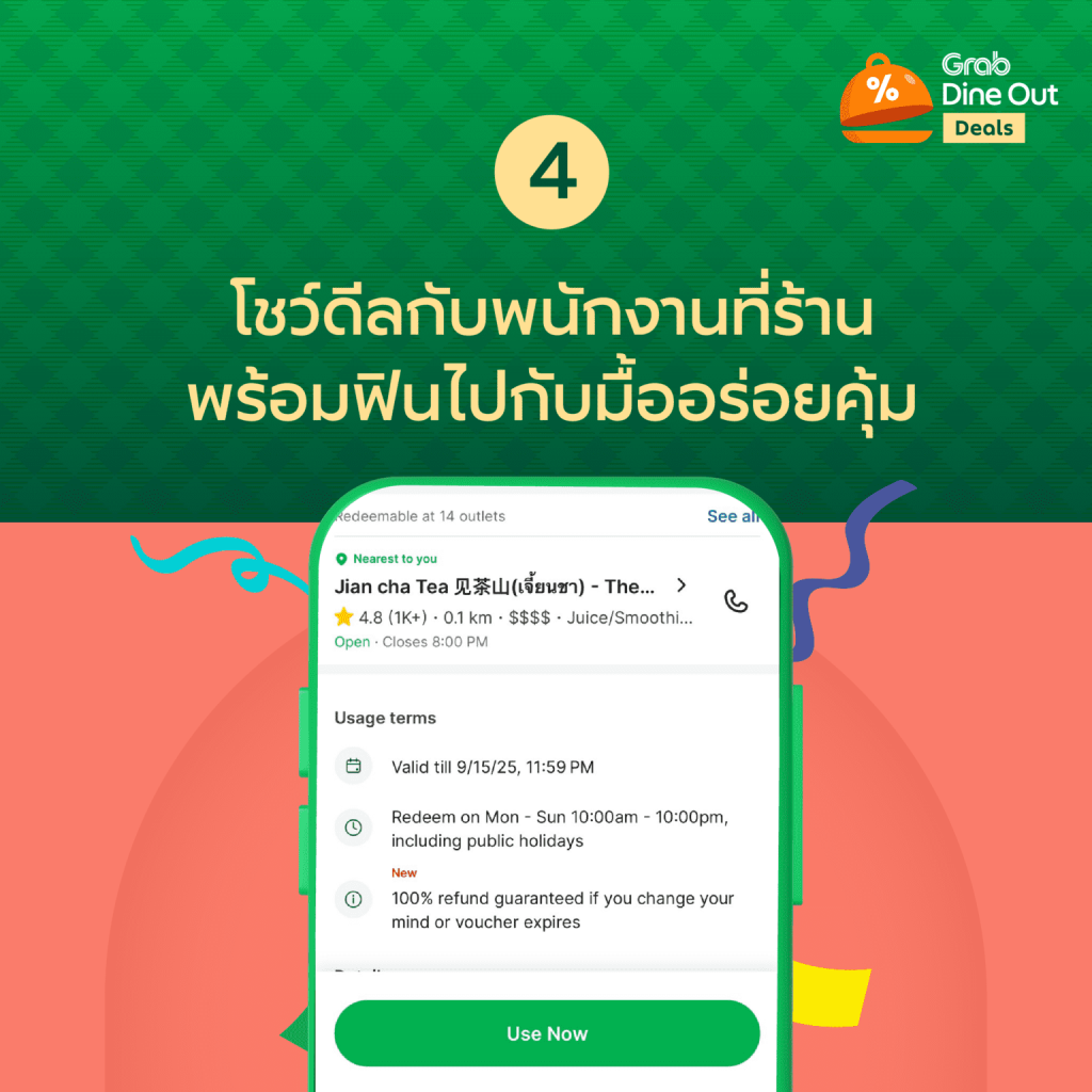 สัมผัสประสบการณ์การรับประทานอาหารที่ร้านแบบใหม่ที่คุ้มค่าและสะดวกสบายยิ่งขึ้นกับ Grab Dine Out ได้แล้ววันนี้ สามารถอ่านรายละเอียดเพิ่มเติมได้ที่: https://www.grab.com/th/food/dine-out/