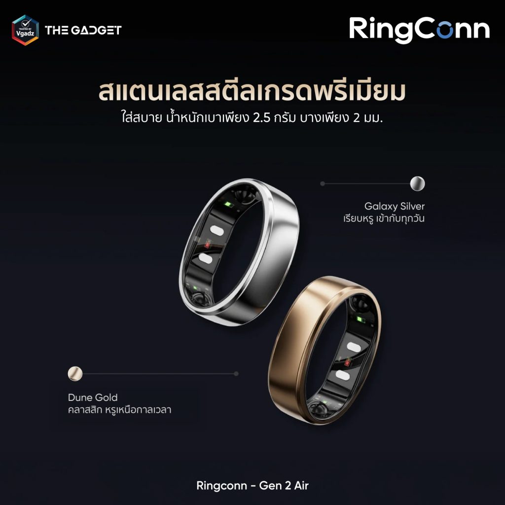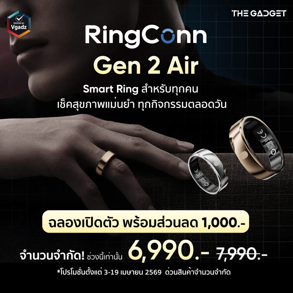 Vgadz (วีแกดซ์) ผู้นำเข้าและจัดจำหน่ายอุปกรณ์เสริมสมาร์ตโฟนและแก็ดเจ็ต ประกาศเปิดตัวสมาร์ตริงรุ่นล่าสุด RingConn Gen 2 Air ด้วยดีไซน์ที่บางเบาจนแทบไม่รู้สึกว่าใส่ พร้อมจัดโปรโมชันต้อนรับการเปิดตัว ลดทันที 1,000 บาท