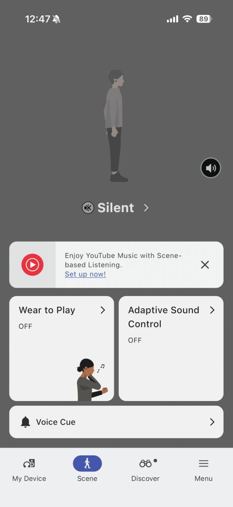 นอกจากนี้ยังมีฟีเจอร์ Scene เพื่อควบคุมหูฟังอัตโนมัติตามสถานการณ์และสถานที่ เช่นกำหนดให้เปิดเพลงอัตโนมัติเมื่อเดินทางไปออฟฟิศหรือไปเรียน หรือกำหนดให้เปิดเพลงเมื่อเดินทางกลับบ้าน นอกจากนี้ยังกำหนดสำหรับการเดิน, การวิ่ง หรือเข้ายิมได้ด้วย แล้วยังมี Voice Cue ที่หูฟังจะอ่านโนติที่เข้ามาให้ฟัง หรือขานเวลาเมื่อขึ้นชั่วโมงใหม่ได้ด้วย สำหรับใครที่ชอบหูฟังฉลาด ๆ น่าจะชอบการเซ็ตค่าเหล่านี้