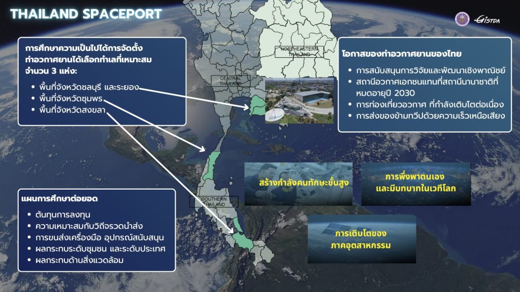จากการศึกษาของ GISTDA ร่วมกับ KPMG พบว่าประเทศไทยมีศักยภาพในการตั้งท่าอวกาศยานได้จริง โดยแบ่งเป็น 2 รูปแบบ และมี 3 พื้นที่เป้าหมาย