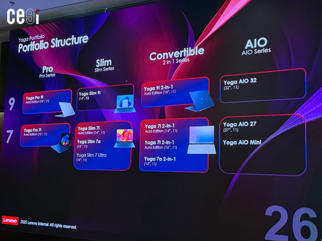 เลอโนโวประกาศวางจำหน่ายผลิตภัณฑ์คอมพิวเตอร์ส่วนบุคคลในไลน์อัป Yoga, IdeaPad และ Legion เจนเนอเรชัน 11 ที่เน้นการทำงานผสานกับ AI แบบ Copilot+ PC และเพื่อฉลองการเป็นพันธมิตรกับ FIFA เลอโนโวได้เปิดตัวสินค้าลิมิเต็ดเอดิชันสำหรับ FIFA World Cup 26™ ด้วย
