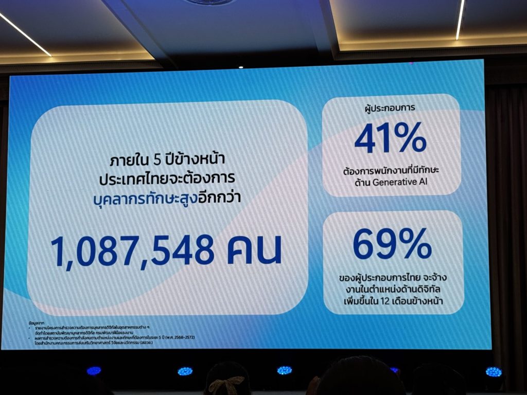 ฟากของผู้ประกอบการเองก็ต้องการพนักงานในตำแหน่งด้านดิจิทัลเพิ่มขึ้นใน 12 เดือนข้างหน้า โดยเฉพาะคนที่มีทักษะด้าน Gen AI นั่นแสดงให้เห็นว่าตลาดแรงงานต้องการคนที่มีทักษะดดิจิทัลมากขึ้น