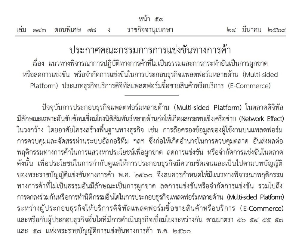 คณะกรรมการการแข่งขันทางการค้า (กขค.) ออกมาตรการใหม่ไกด์ไลน์อีคอมเมิร์ซ คุมเข้มแพลตฟอร์มแก้ปัญหาผูกขาด-แข่งขันไม่เป็นธรรม