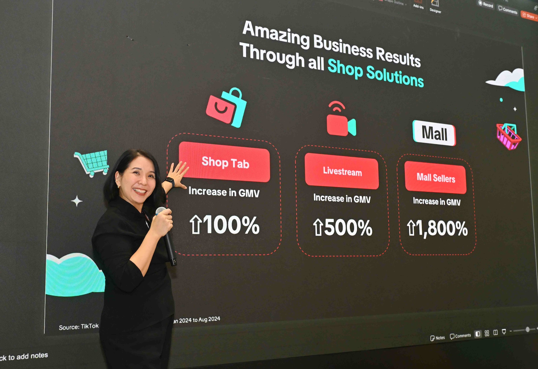 คุณกรณิการ์ นิวัติศัยวงศ์, Head of FMCG, E-Commerce – TikTok Shop Thailand กล่าวว่า “TikTok Shop เป็น Entertainment First Shopping Platform ที่นำเสนอข้อมูลและประสบการณ์การช้อปแบบอินเตอร์แอคทีฟเต็มประสิทธิภาพ ที่สร้างแรงบันดาลใจใหม่ ๆ ให้กับผู้บริโภคที่มองการช้อปปิ้งเป็นกิจกรรมสนุกสนานและสร้างความพึงพอใจ โดยตั้งแต่ต้นปีจนถึงแคมเปญ 8.8 ที่ผ่านมาเราเติบโตเคียงข้างธุรกิจไทยอย่างต่อเนื่อง TikTok Shop มียอด GMV เพิ่มขึ้นถึง 500% ผ่านช่องทางการซื้อสินค้าผ่าน Livestream [1] นอกจากนี้ Shop Tab ซึ่งเป็นฟีเจอร์ที่เปิดตัวเมื่อปี 2023 เพื่อให้ความสะดวกแก่ลูกค้าในการค้นหาสินค้าที่ต้องการอย่างรวดเร็วมียอดการเติบโตสูงถึง 100% [1] ขณะที่ยอดผู้ขายที่ลงทะเบียนเป็นร้านค้าใน TikTok Shop Mall เองก็เพิ่มขึ้นถึง 3 เท่า [1] ส่งผลให้ยอด GMV ของ TikTok Shop Mall มีการเติบโตถึง 18 เท่า [1] ตอกย้ำว่า TikTok Shop ได้เข้ามาเป็นอีกหนึ่งฟันเฟืองสำคัญที่ช่วยเติมเต็มประสบการณ์ One-Stop Shopping ให้แก่ผู้บริโภคไทย พร้อมเปลี่ยน Shopping Journey ให้กระชับและยังมอบผลลัพธ์ทางธุรกิจที่น่าทึ่งให้กับแบรนด์และร้านค้าอย่างต่อเนื่อง”